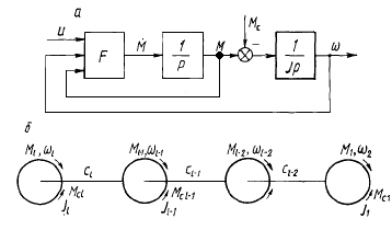 где J- момент инерции; М, Мс — моменты двигателя и сопротивления; ω — угловая скорость вала; u — управляющий сигнал на входе преобразователя, от которого получает напряжение двигатель. Функция F(u, ω, M) отражает динамические свойства привода, который обычно является нелинейным звеном.