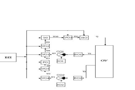 Об'єктом керування ОУ в даній системі є водонагрівач. На виході з об'єкта керування маємо два сигнали по температурі повітря й по температурі води.