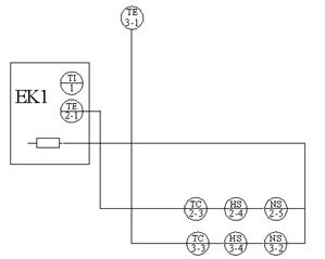 При замиканні вимикача QF1 в автоматичному режимі реле часу КТ1 через 15...45 секунд видає сигнал на включення електронагрівника, при цьому загоряється сигнальна лампа HL2.