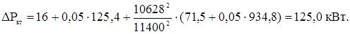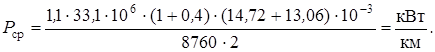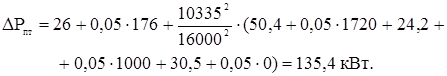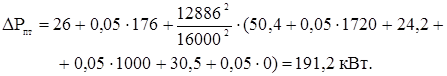 – средняя потеря мощности в тяговой сети DPтс = 734,4 кВт.