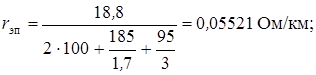 где rм - удельное сопротивление медного проводника длиной 1 км и сечением 1 мм2 , равное 18,8 Ом×мм2 /км;