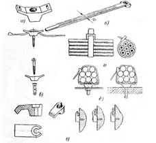 Рис.1.3.3. Пластмассовые закрепы и скобы, зубчатые полоски и их применение