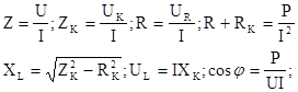 Запишите формулы для расчета R, RK , LK , C,w, ZK , cosj, Z, если известны показания амперметра, вольтметров, ваттметра.