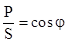 Эффективность использования электрической установки определяется по отношению активной мощности Р к полной мощности S, потребляемой приемником из сети. Это отношение называется коэффициентом мощности . Из треугольника мощностей (рис.1) видно, что
