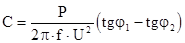 При компенсации реактивной энергии за счет установки конденсаторов их величина может быть определена по формуле: