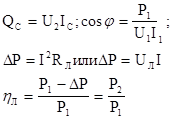 3.4 Вычислить реактивную мощность включенной батареи конденсаторов Qc, коэффициент мощности cosj, потери мощности в резисторе RЛ - DР, КПД линии hЛ. .