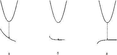 Рисунок 1: а - резко отталкивательная кривая; б - плоская кривая; в - кривая связанного состояния на больших межъядерных расстояниях