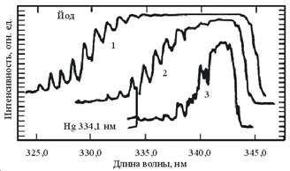 В случае йода спектр был снят за 1, 3 и 5 импульсов, а в случае брома - за 1, 5 и 10 импульсов. Длинноволновая часть импульсов характеризуется большим количеством подавленных импульсов.