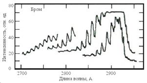 Не существует четко выраженных вращательно-колебательных переходов, и переход является относительно широкополосным.