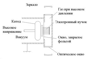 Обычно эксимерные лазеры на инертных газах работают при относительно высоких давлениях (более двух атмосфер), а источником возбуждения являются пучки электронов сравнительно высокой энергии и плотности (~1 МэВ, сотни А·см-2 ). При таких условиях концентрация электронов в образующейся плазме довольно высока (более 1014 см-3 ).