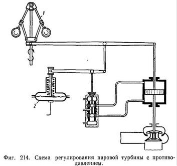 Турбина с противодавлением может оказаться и в таких условиях, когда тепловой потребитель расходует пара меньше, чем то количество, которое необходимо для выработки электрической энергии. В упомянутых условиях турбина может работать только по тепловому графику, отдавая электрическую энергию в сеть совместно с другими машинами, работающими параллельно и покрывающими колебания электрической нагрузки.