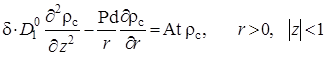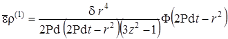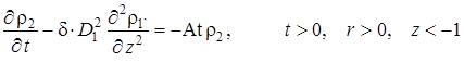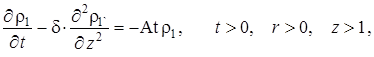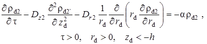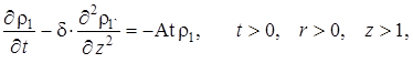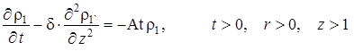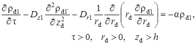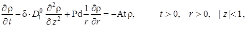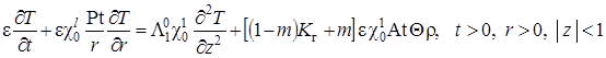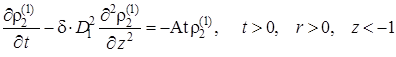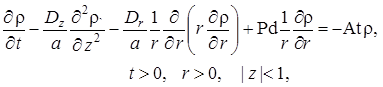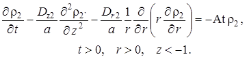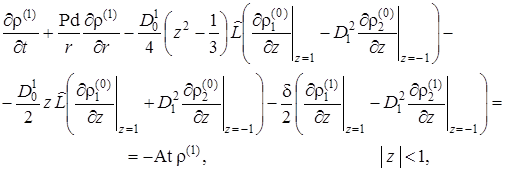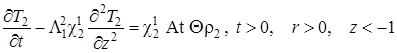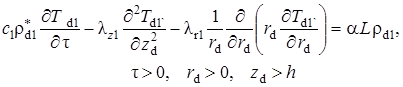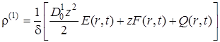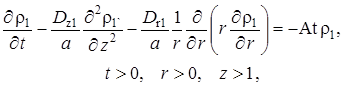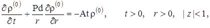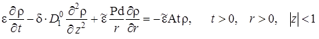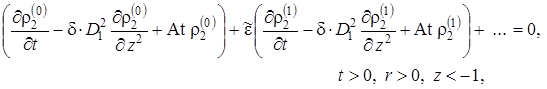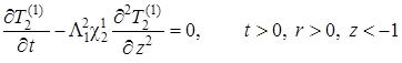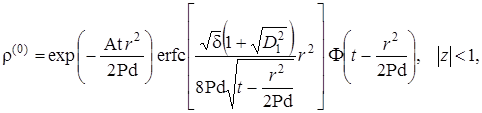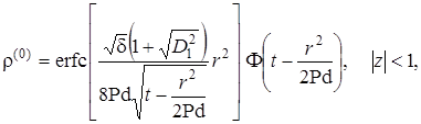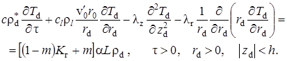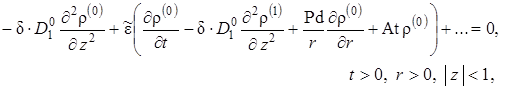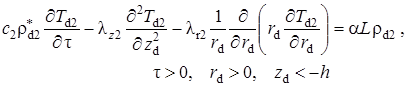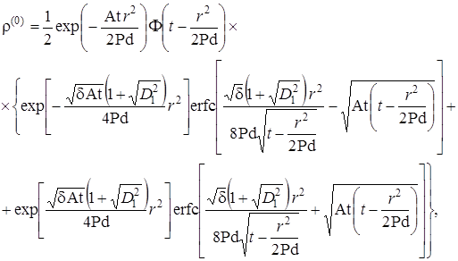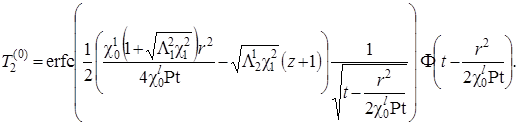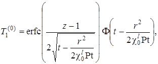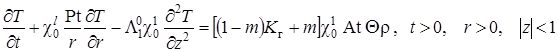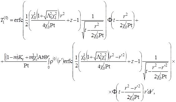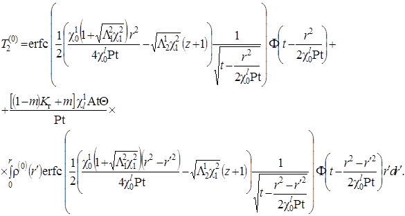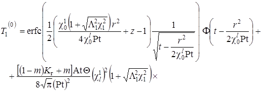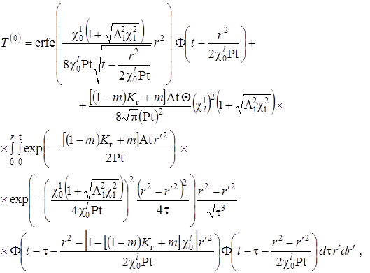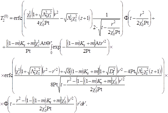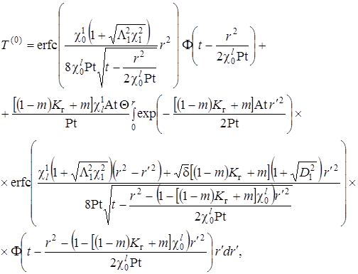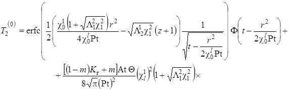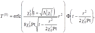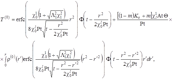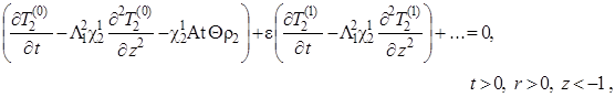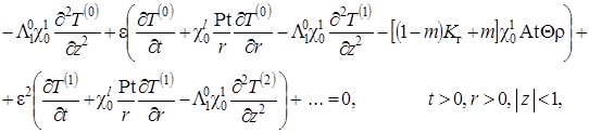 Выписаны уравнения, определяющие изменение температурного поля. Произведено обезразмеривание задачи о распространении поля температур. Произведена оценка вклада радиальной температуропроводности в процессы теплопереноса, и сделан вывод о возможности пренебрежения соответствующими составляющими в уравнении теплопереноса. Введён параметр асимптотического разложения, определена математическая постановка задачи для нулевого и первого приближений. Сделан вывод о необходимости первоначального решения задачи, определяющей зависимость плотности загрязнителя от времени и координат.
