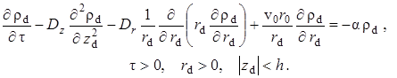 – Найдено стационарное решение задачи о распространении плотности радиоактивного загрязнителя, установлена область применимости задачи в бездиффузионном приближении для расчетов полей в реальных условиях.