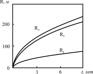 Практическая значимость . На основе полученных решений созданы новые способы расчётов экологической безопасности природных глубоко залегающих объектов, используемых для захоронения радиоактивных отходов АЭС и промышленных предприятий. Определена зависимость величины и положения максимума температурного поля от параметров закачки, энергетической активности загрязнителя и теплофизических свойств пластов, что очень важно для предотвращения неблагоприятных последствий, в частности, «теплового взрыва».