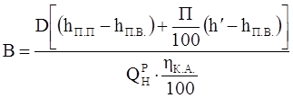 Исходные данные:Рп.п =14 МПа, tп.п =400 0 С, tп.в. =110 0 С, tух =190 0 С, Рк.у =1,4МПа, aт =1,05, tвоз =200 0 С, t0 =0 0 С, величина непрерывной продувки П=3%, теплота сгорания сухого газа Q=16,422 МДж/м3 . Вид топлива: коксовый газ D=45 т/ч, присос воздуха Da=0,3