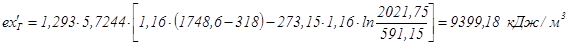 4.15 Потери эксергии за счёт теплообмена в котле-утилизаторе, кДж/м3