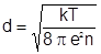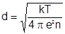 Рассмотрим теперь пространственный масштаб разделения зарядов. В некотором объёме плазмы с характерным размером d, который называется дебаевским радиусом экранирования, потенциальная и кинетическая энергии заряженной частицы равны между собой.