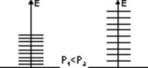 А если уменьшить объем тела, например, сжав его? Концентрация энергии в веществе повысится, каждый электрон получит дополнительную энергию, стопка уровней приподнимется, зазоры между ними расширятся. Повышение энергии всегда требует приложения определенной силы - тело будет сопротивляться сжатию. Если же давление снять, энергетические уровни сползут вниз, вернутся в прежнее низшее положение, соответствующее большему объему (см. рис. 5).