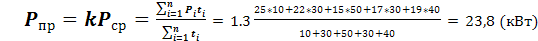 Определение номинальной мощности двигателя для работы в длительном режиме с переменной нагрузкой сводится к подсчёту мощности Рс исполнительного механизма, приведённой к валу двигателя (с учётом к.п.д. передач, редукторов и т. д.). По полученной мощности Р в каталогах выбирают двигатель с номинальной мощностью РНОМ>Рс