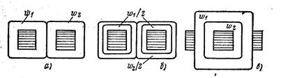 В низковольтных трансформаторах обмотки располагаются в соответствии с рис.1.2,б