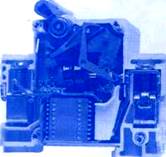 Струмовий розчеплювач «5» виконаний з міді і має посріблені контакти. Дугогасильна камера «6», що складається з дев'яти пластин, підвищує комутаційну зносостійкість і дає високі характеристики граничної коммутаційної здатності.