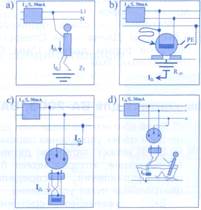 b) обрив захисного проводу відмова захисту у разі несправності;