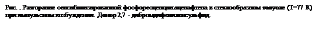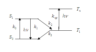Изучение кинетики затухания люминесценции и зависимости выхода фотопродукта, а также концентрации триплетов от интенсивности(мощности) возбуждающего излучения при одноквантовых и двухквантовых реакциях является основным методом исследования преобразования и передачи энергии в веществе, в различных химических и биологических процессах[2]. Двухквантовая фотохимия представляет большой интерес для всех областей техники, где приходится иметь дело с фотохимическими процессами в полимерах и стеклах, содержащих ароматические группы или добавки. Лазеры, где активной средой служат органические соединения- одна из важнейших технических областей, где следует принимать во внимание возможность протекания двухквантовых реакций, могущих при определенных условиях повлиять на процессы, идущие в активной среде лазерного прибора[3]. И конечно же следует отметить существенную роль двухквантовых фотопроцессов при спектральном анализе. Важнейшим источником информации о строении и свойствах молекул и твердых тел являются их оптические спектры. В экспериментальных исследованиях триплетных молекул важное место, наряду со спектральными, занимают кинетические методы [4,5,6], то есть изучение процессов заселения и распада возбужденных состояний. Определенные из кинетических экспериментов параметры являются характеристиками, как самих молекул, так и их взаимодействия между собой и с матрицей, в случае примесных центров. Особенно важным является то, что параметры кинетики (время накопления и время дезактивации возбужденных состояний), определяются константами скоростей соответствующих переходов и, следовательно, позволяют извлечь информацию, о путях дезактивации триплетно возбужденных молекул. Этим обусловлена необходимость использования кинетических методов для установления и изучения механизмов дезактивации триплетных состояний органических молекул в твердых матрицах при их сенсибилизированном возбуждении.