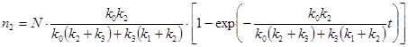 В качестве дополнительного задания для сравнения были проведены расчеты, справедливость которых можно также проверить и подтвердить экспериментальным путем: образование и распад возбужденных частиц при одноквантовых реакциях также происходит по экспоненциальному закону с временем разгорания и затухания равными соответственно: