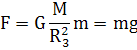 Если M – масса Земли, RЗ – ее радиус, m – масса данного тела, то сила тяжести равна