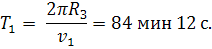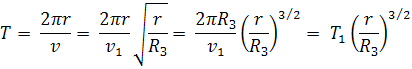 Таким образом, на высоких орбитах скорость движения спутников меньше, чем на околоземной орбите. Период T обращения такого спутника равен