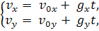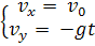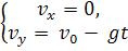 В этом случае v0x = 0, gx = 0, v0y = v0 , gy = -g.