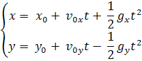 Основной задачей механики, является определение положения тела в любой момент времени. Решением задачи для частиц, движущихся в поле тяжести Земли, являются уравнения, в проекциях на оси OX и OY: