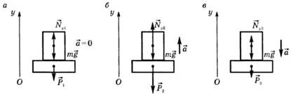 Рассмотрим, как изменяется вес тела, движущегося в вертикальном направлении вместе с опорой. На тело действуют сила тяжести и сила реакции опоры.
