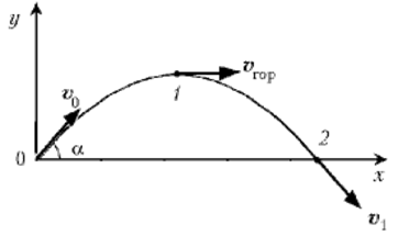 Рис.7. Движение тела, брошенного под углом к горизонту.