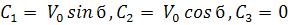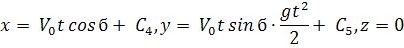 Подстановка начальных данных даёт С4 = С5 = С6 = 0, и мы окончательно находим уравнения движения точки М в виде: