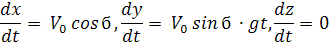 При этом v0x = v0 , gx = 0, v0y = 0, gy = - g , х0 = 0, и, следовательно,