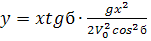 Это – уравнение параболы с осью, параллельной оси Оy . Таким образом, брошенная под углом к горизонту тяжёлая точка движется в безвоздушном пространстве по параболе (Галилей).