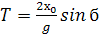 Время полета. Из первого уравнения системы (1) следует, что полное время полета Т определяется равенством