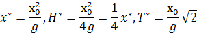 При угле наибольшей дальности α=45° все найденные величины равны: