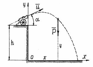Из пушки, установленной на высоте h, произвели выстрел под углом α к горизонту. Ядро вылетело из ствола орудия со скоростью u. Определим уравнения движения ядра.