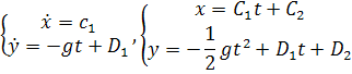 Осталось найти постоянные интегрирования. Подставляем начальные условия (при t = 0, x = 0, y = h,