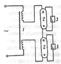 1 – дроссель; 2 – лампа; 3 – накальный трансформатор.