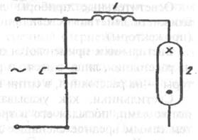 1 – дроссель; 2 – лампа; С – конденсатор.