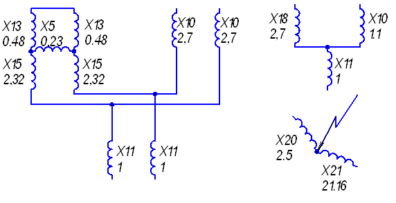 При этом необходимо учитывать, что схема короткой сети- треугольник на шинном пакете. Именно такая схема дает возможность установить все указанные регистрирующие приборы на низкой стороне на линейные токи.