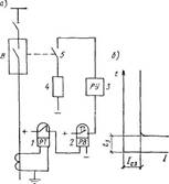 На рис. 4,a показана принципиальная схема максимальной защиты, выполненной при помощи электромагнитного реле максимального тока 1 и реле времени 2.