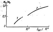 На рис. 1.1 для сравнения показаны соответствующие зависимости для двух типов двигательных установок – с большой и малой тягой соответственно, В случае малой тяги величина Мк /М0 оказывается в несколько раз больше, время перелета при этом, однако, значительно увеличивается. Это отличает ЭРД от других типов ракетных двигателей.