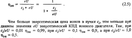 Энергетическая цена ионов в пучке является одной из основных величин, определяющих энергетический КПД ионного двигателя. Энергия, затрачиваемая на ускорение иона в электростатической ускоряющей системе, равна eU ( U – ускоряющая разность потенциалов