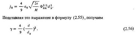 Здесь Ф, Е и.р – потенциал, напряженность поля и плотность объемного заряда в сечении х; Фан – потенциал анода;?«к и рк – напряженность электрического поля и плотность объемного заряда в плотности катода.