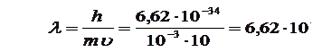 Формула (1.1.4) називається формулою де Бройля. Вона дає можливість оцінити довжину хвилі мікроскопічної частинки масоюm , яка рухається із швидкістю . У макроскопічних тіл ці властивості не проявляються. Так, у тіла масою 1 г, яке летить із швидкістю 10 м/с довжина хвилі де Бройля, у відповідності з формулою (1.1.4), дорівнює