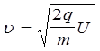 Швидкість електронів , які пройшли прискорювану різницю потенціалів U знайдемо з умови